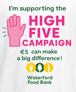 Give us a High Five!!! We are proudly launching our High Five campaign at All Together Now this year 🙂 €5 can make such a huge difference to our fight against food poverty in Waterford City, so if you see our stand, give us a 'High Five!!' As an unfunded charity, donations like this are what allows us to continue the work we do, reaching 250+ families a week in our city and surrounding areas. So, happy Bank Holiday Weekend from all of us at Waterford Food Bank